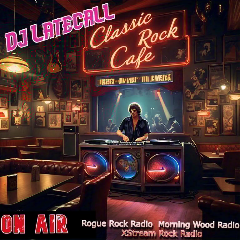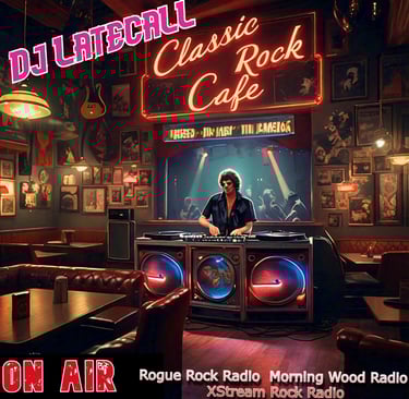 I am Dj Latecall. I've been an online dj for almost 20 years, playing mostly Classic Rock and Rock music. Oldies, like me!. I am the proud father of a 21 year old son,once known as "The Brat", but he's too big for that now. I play music to have fun and bring back memories and smiles to listeners. Join me for a walk down Memory Lane to The Classic Rock Cafe on Saturday nights, from 9pm eastern to midnight on..... Rogue Rock Radio
